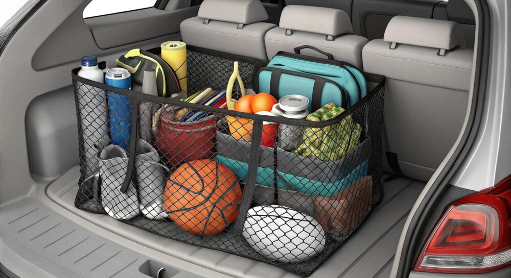 • Сетки-гамаки: Располагаются горизонтально, создавая дополнительный уровень для перевозки легких предметов, таких как мягкие сумки или детские игрушки.