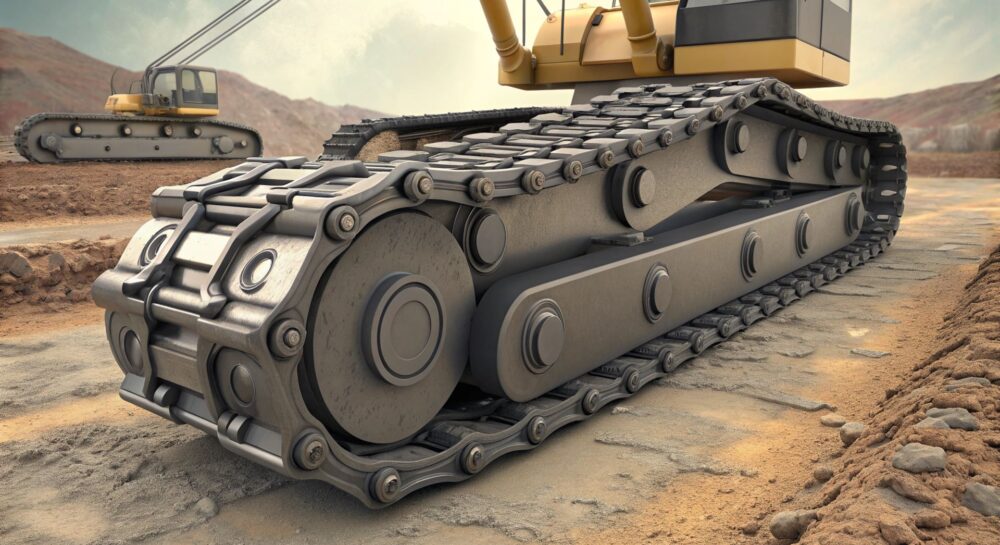 - Цепи для гусениц — обеспечивают движение экскаватора по различным типам поверхности: грунту, щебню, бетону.