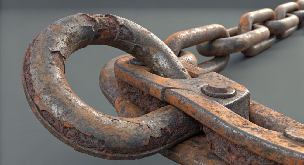 • Уменьшение сечения звена: Коррозия «съедает» металл, делая его тоньше и слабее.