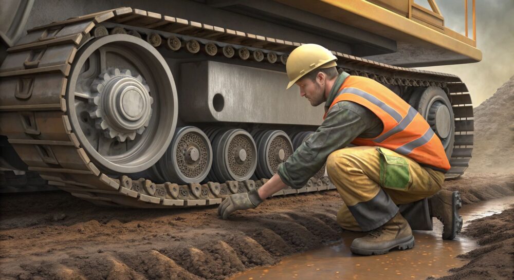 - Повторная проверка натяжения: После первого пробега остановите экскаватор и еще раз проверьте натяжение цепей. Возможно, потребуется дополнительная регулировка.