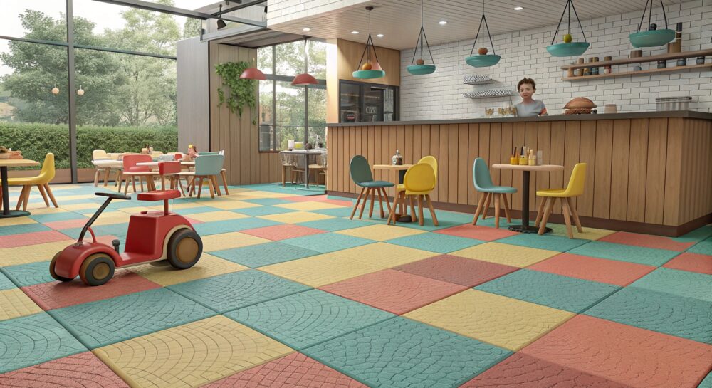 Как выбрать резиновую плитку для игровых зон кафе: от технических нюансов до монтажа