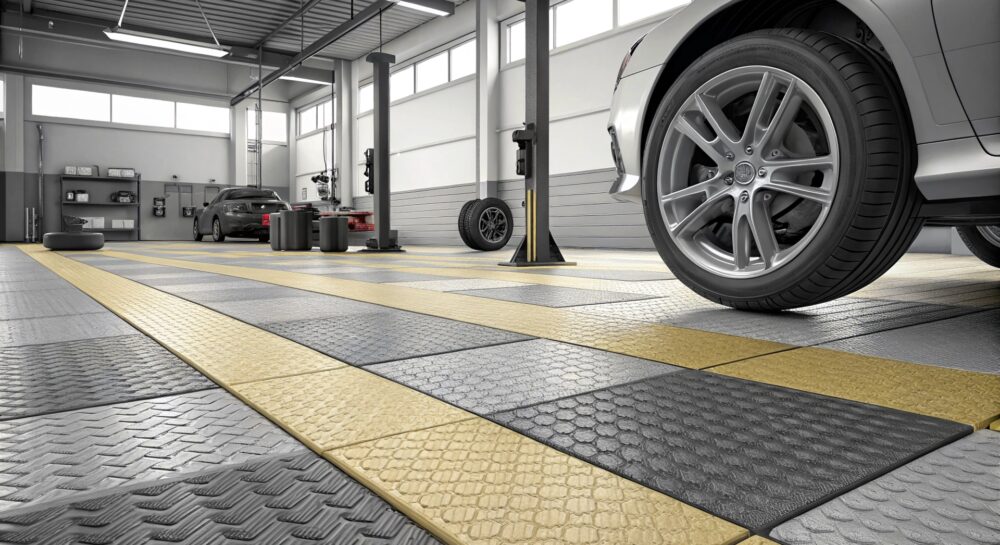 Резиновая плитка в шиномонтажных мастерских: выбор, установка и уход