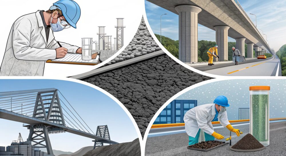 Резиновая крошка в составе бетона повышает его пластичность и долговечность, делая конструкции более устойчивыми к деформациям и механическим нагрузкам. Благодаря микроструктуре частиц, она улучшает связь между цементным раствором и основой, что повышает адгезию и сопротивление трещинам. Такое решение особенно актуально для дорожных покрытий и мостов, где важна термостойкость и сопротивление истиранию.