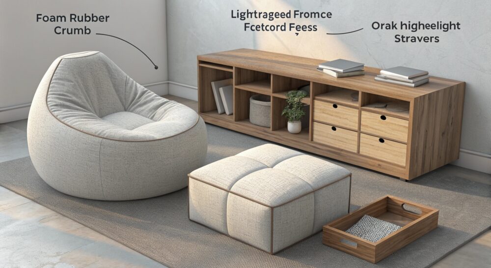 Резиновая крошка в бескаркасной мебели: преимущества, выбор и экологичность(49 символов)