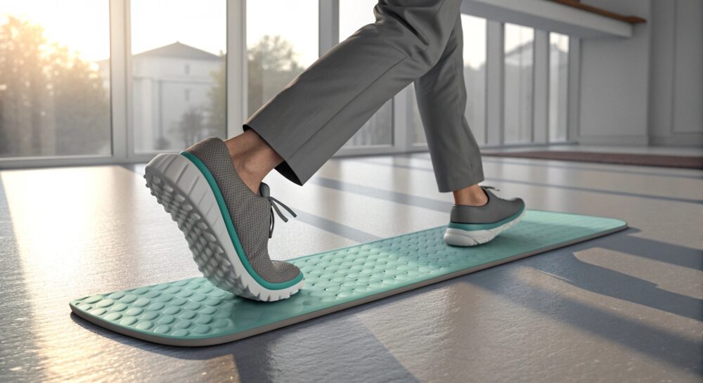 Когда вы босиком, резиновая крошка выполняет двойную роль: она усиливает контакт с поверхностью и разгружает стопы. Исследования показывают, что такие покрытия улучшают механическую обратную связь, помогая мозгу точнее распознавать положение тела. Это особенно важно для людей с диабетом или неврологическими расстройствами, где потеря чувствительности может привести к травмам. Резина обладает повышенной амортизацией, прочностью и антискользящим покрытием, что делает её идеальной для защиты от острых предметов на полу. Например, если вы стоите на ковровом покрытии с мелкой крошкой, она распределяет нагрузку, предотвращая сдавливание пальцев ног. Её тонкая подошва (обычно от 2 до 5 мм) не мешает естественному движению стопы.