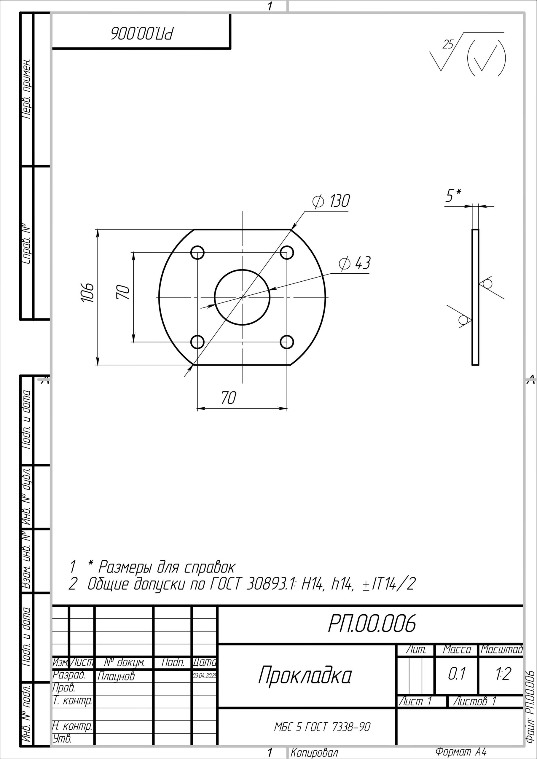 Представляем высококачественную прокладку, разработанную согласно чертежу РП.00.006. Эта деталь является неотъемлемой частью многих механизмов, обеспечивая герметичность и долговечность соединений. Изготовленная с учетом строгих стандартов, она гарантирует бесперебойную работу вашего оборудования.